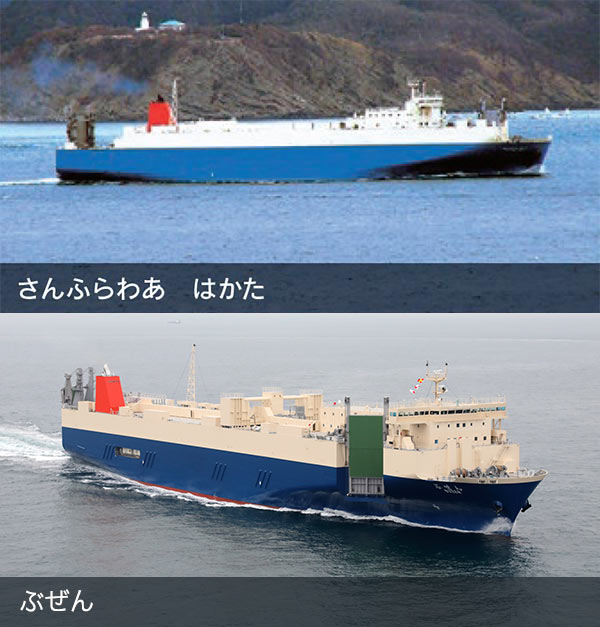 計4隻のRORO船を投入し、首都圏~九州間の安定的な輸送サービスを提供しております。電源使用の冷凍車もご乗船いただけます。